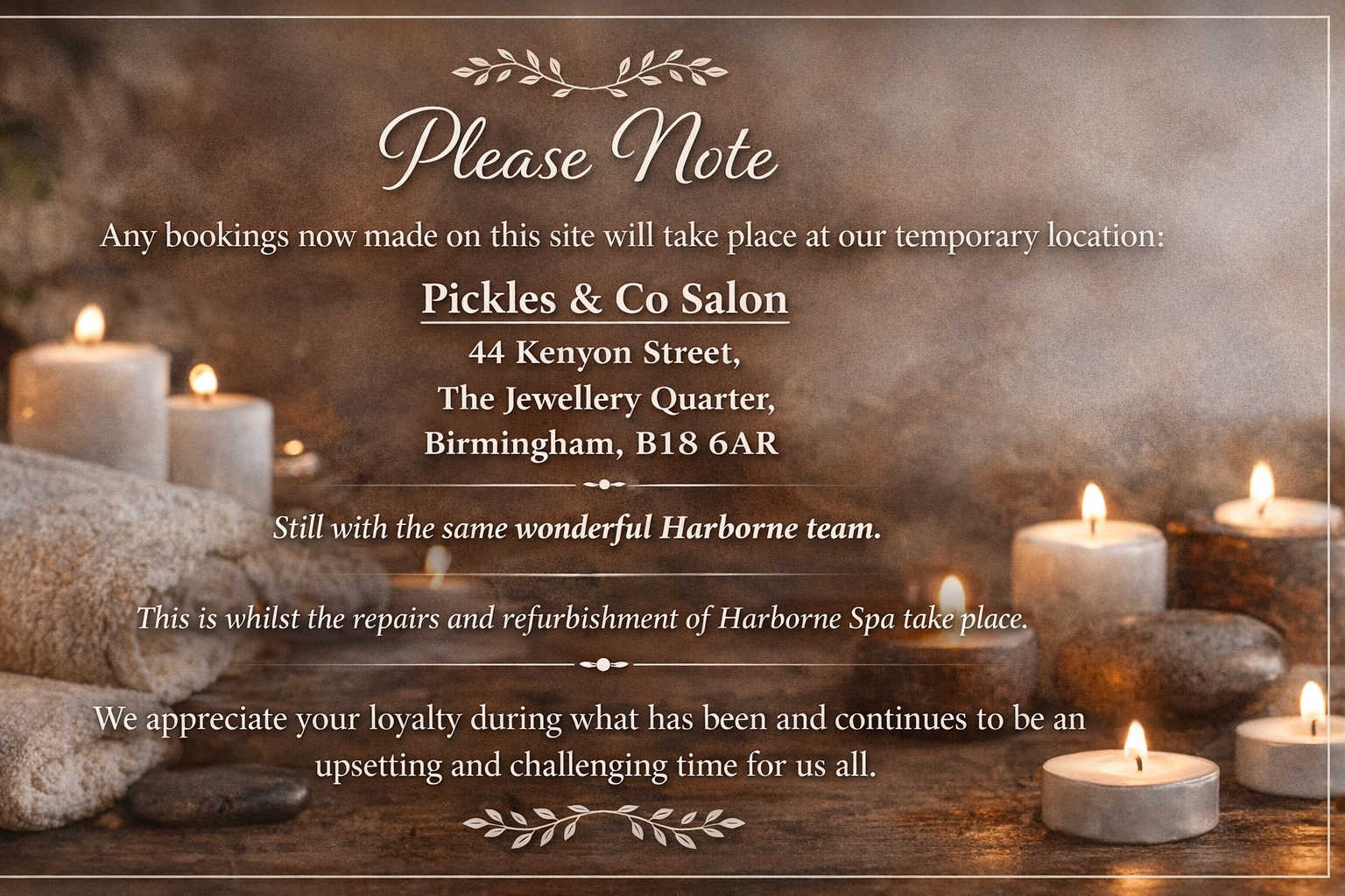 Please contact us if you would like a copy of our services emailed to you either by completing the form to the right or emailing info@harborne.searchstack.co.uk. We politely request a 50% deposit for any treatments. We kindly ask that you notify us at least 24 hours in advance if you wish to cancel or reschedule your appointment. Late cancellations and “no shows” cost us precious time and money, therefore if we receive less than 24 hrs notice of cancellation, 50% of the treatment cost will be charged.